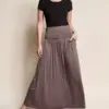 Same construction as our yoga jogger waist., Maxi skirt with pockets., Must have item., Flared bottom , Banded waist.