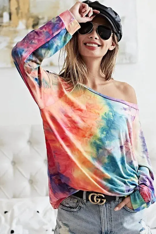 This tie-dye soft knit jersey pullover is a cozy and trendy addition to your casual wardrobe. The tie-dye pattern adds a fun and colorful touch to the pullover, perfect for a laid-back vibe. Made from soft knit jersey fabric, this pullover is comfortable and easy to wear. Pair it with leggings or jeans for a relaxed and stylish outfit. Stay comfy and fashionable in this cute tie-dye soft knit jersey pullover.