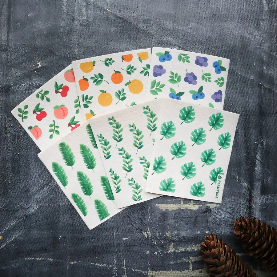 The Blueberry Swedish Sponge Cloth is inspired by blueberries, grapes, and their sweetness. To remove stains instantly, useStain Removing Soap BarorSolid Dish Soap and rub under running water.