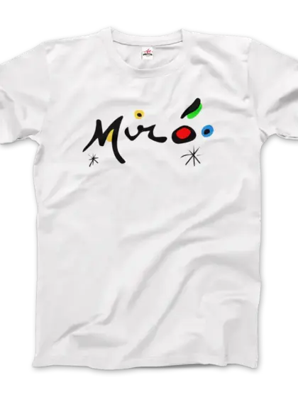 This amazing tee carriesa colorful signaturefrom the great Joan Miro i Ferra. Earning international acclaim, his work has been interpreted as Surrealism, a sandbox for the subconscious mind, a re-creation of the childlike, and a manifestation of Catalan pride.