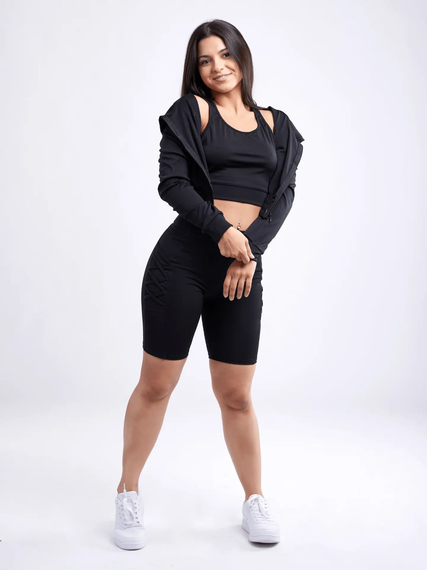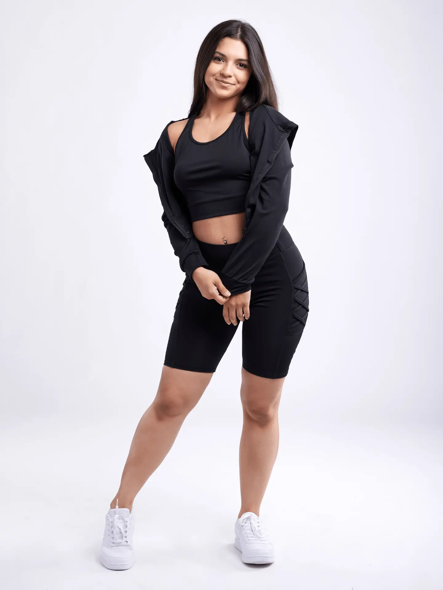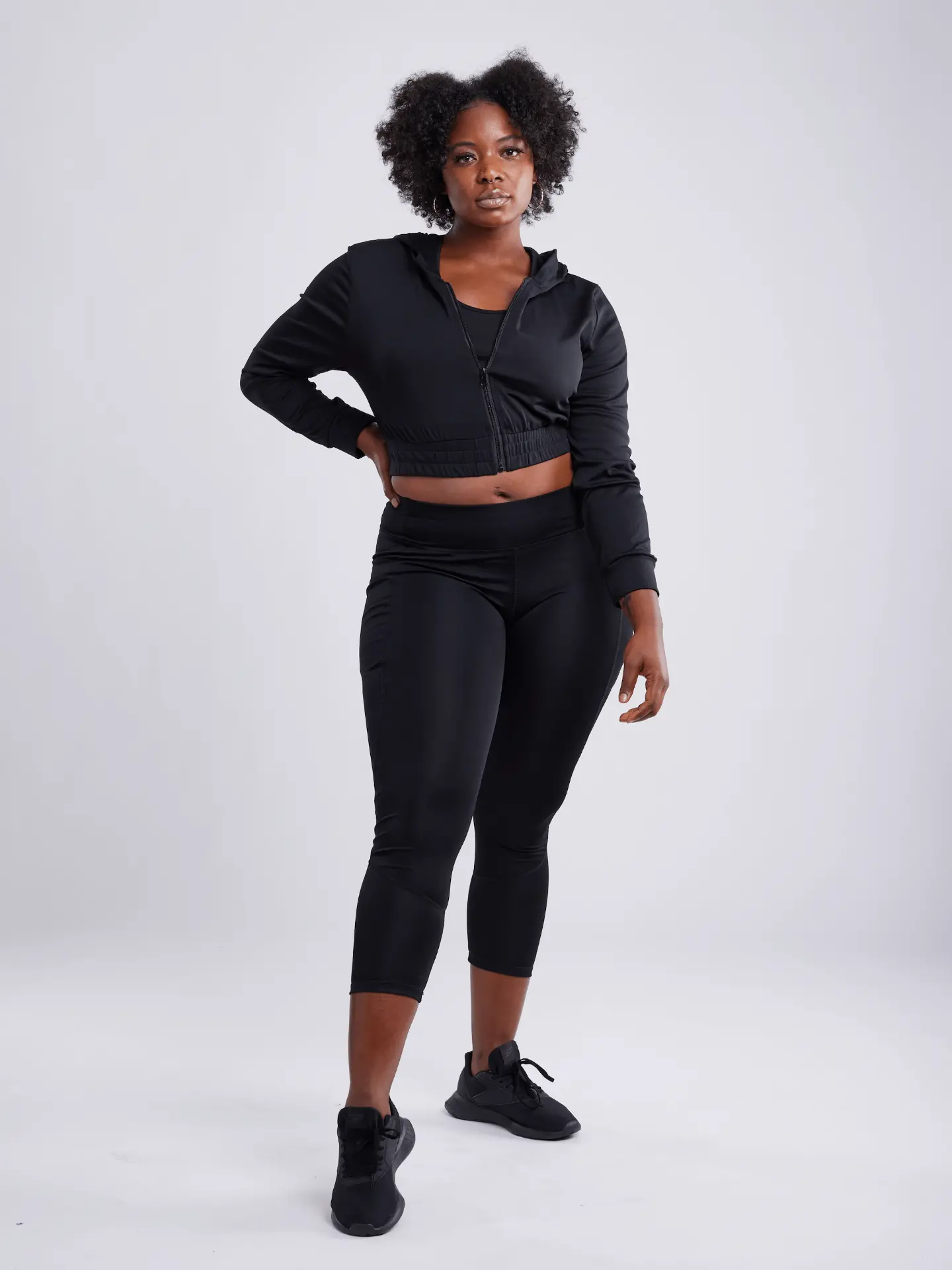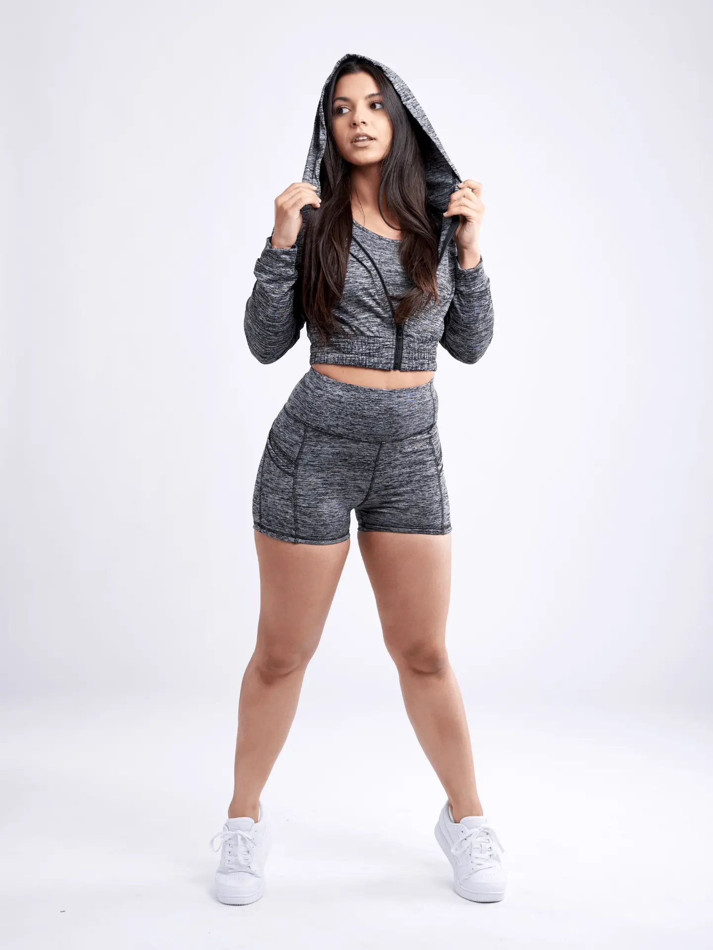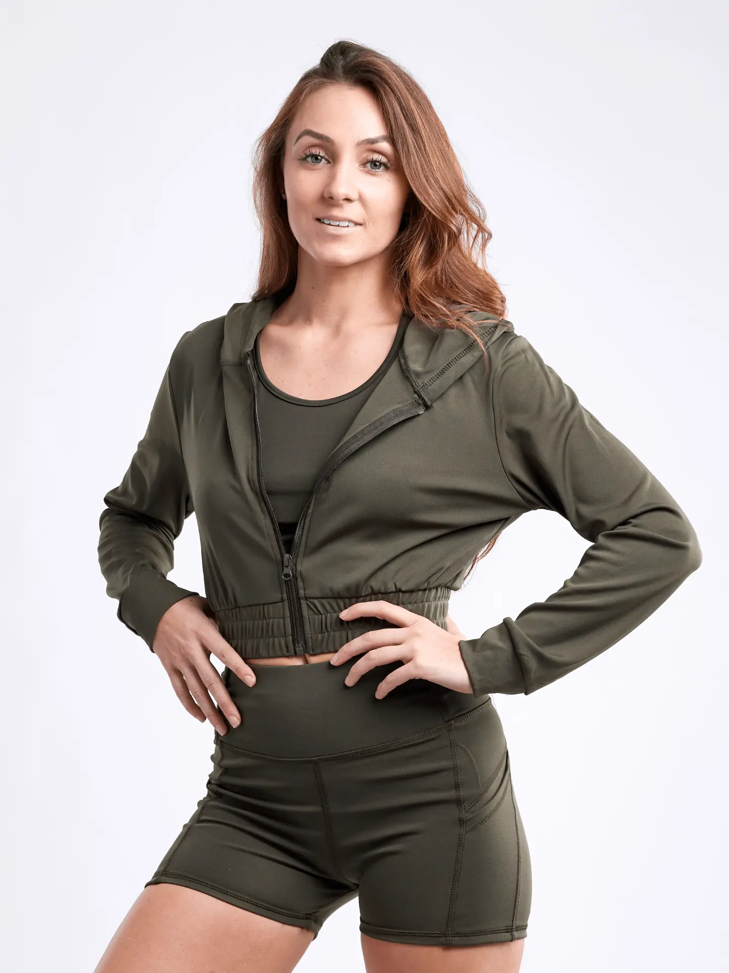 Fitted Athletic Zip-Up Crop Hoodie Jacket for Women